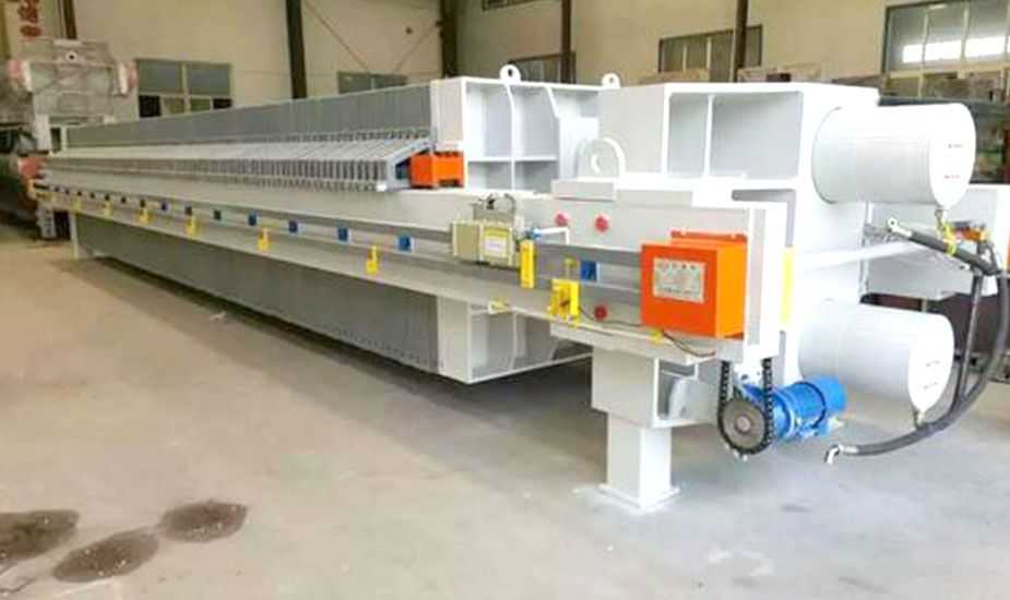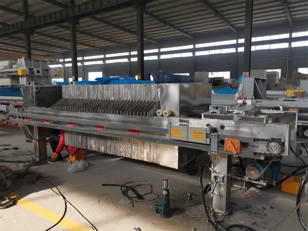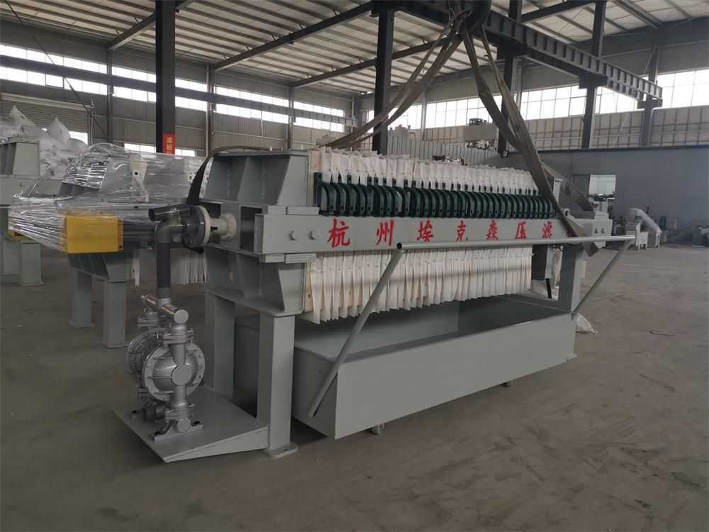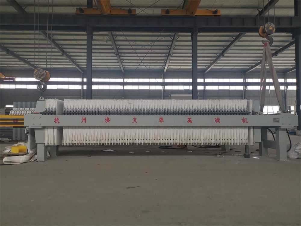 隔膜壓濾機(jī)和常規(guī)箱式壓濾機(jī)的主要區(qū)別在于,在濾板的兩側(cè)都增加了兩個(gè)彈性膜(復(fù)合橡膠膜是一個(gè)整體式膜。在操作期間,當(dāng)進(jìn)料完成時(shí),將高壓流體介質(zhì)注入膜中,并使整個(gè)膜膨脹以過(guò)濾濾餅,以進(jìn)一步使濾餅脫水,這是壓力過(guò)濾。在隔膜壓濾機(jī)運(yùn)行期間,液壓系統(tǒng)使用液壓油作為壓力載體來(lái)傳遞內(nèi)部壓力。